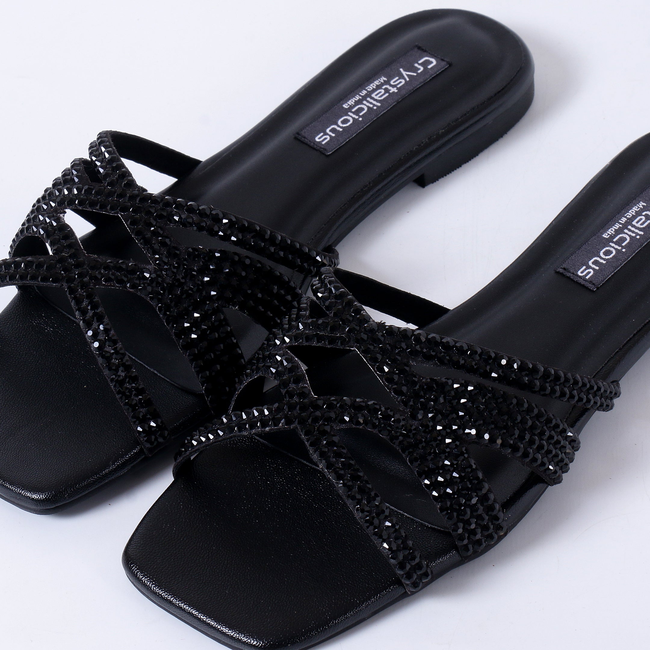 Redefine everyday elegance with the Reba Flat, a perfect fusion of style, comfort, and sustainability. Handcrafted from premium faux leather and featuring a rubber sole, this flat is adorned with 4mm dazzling rhinestones and designed with a chic square toe shape, making it an ideal choice for fashion-forward individuals who value comfort and grace.