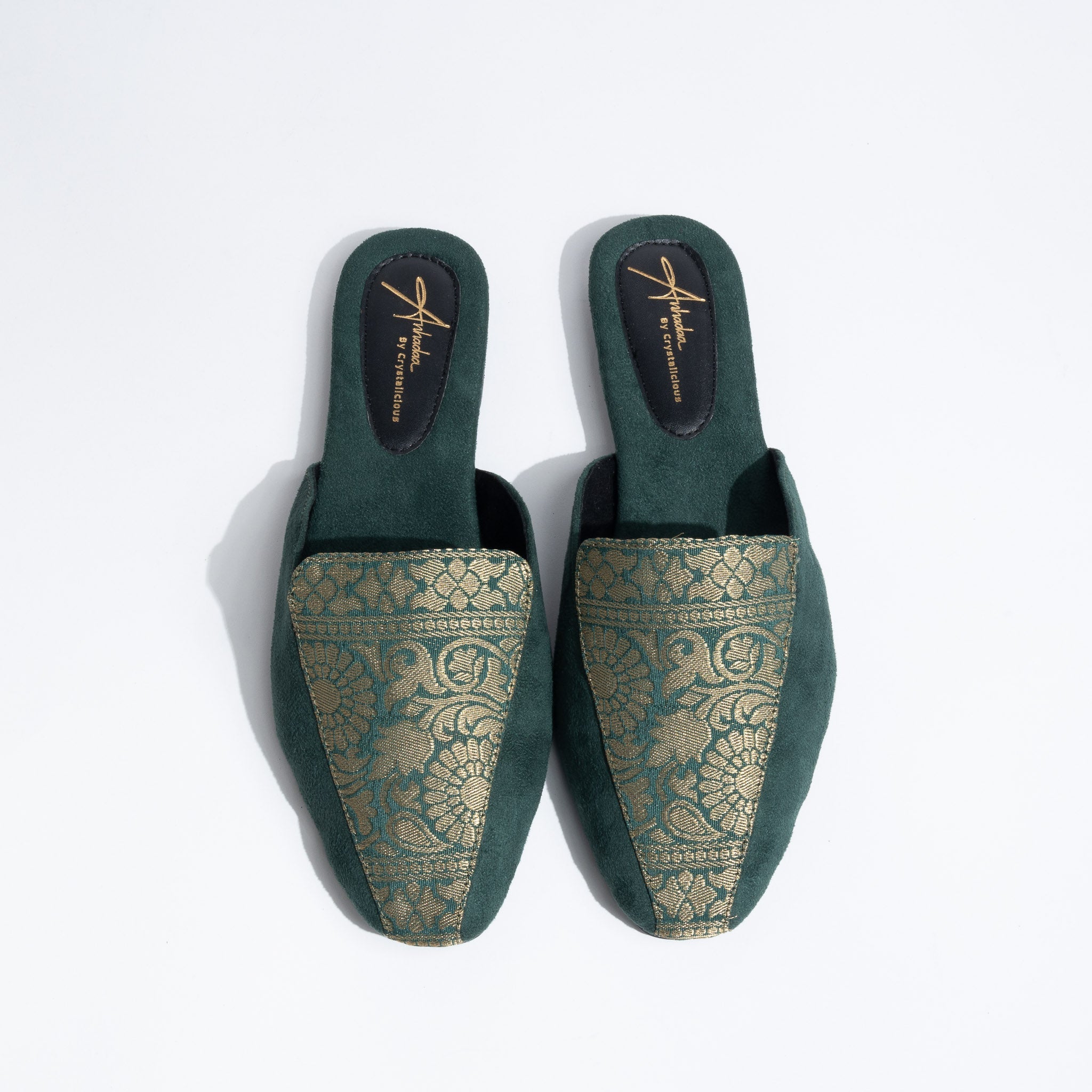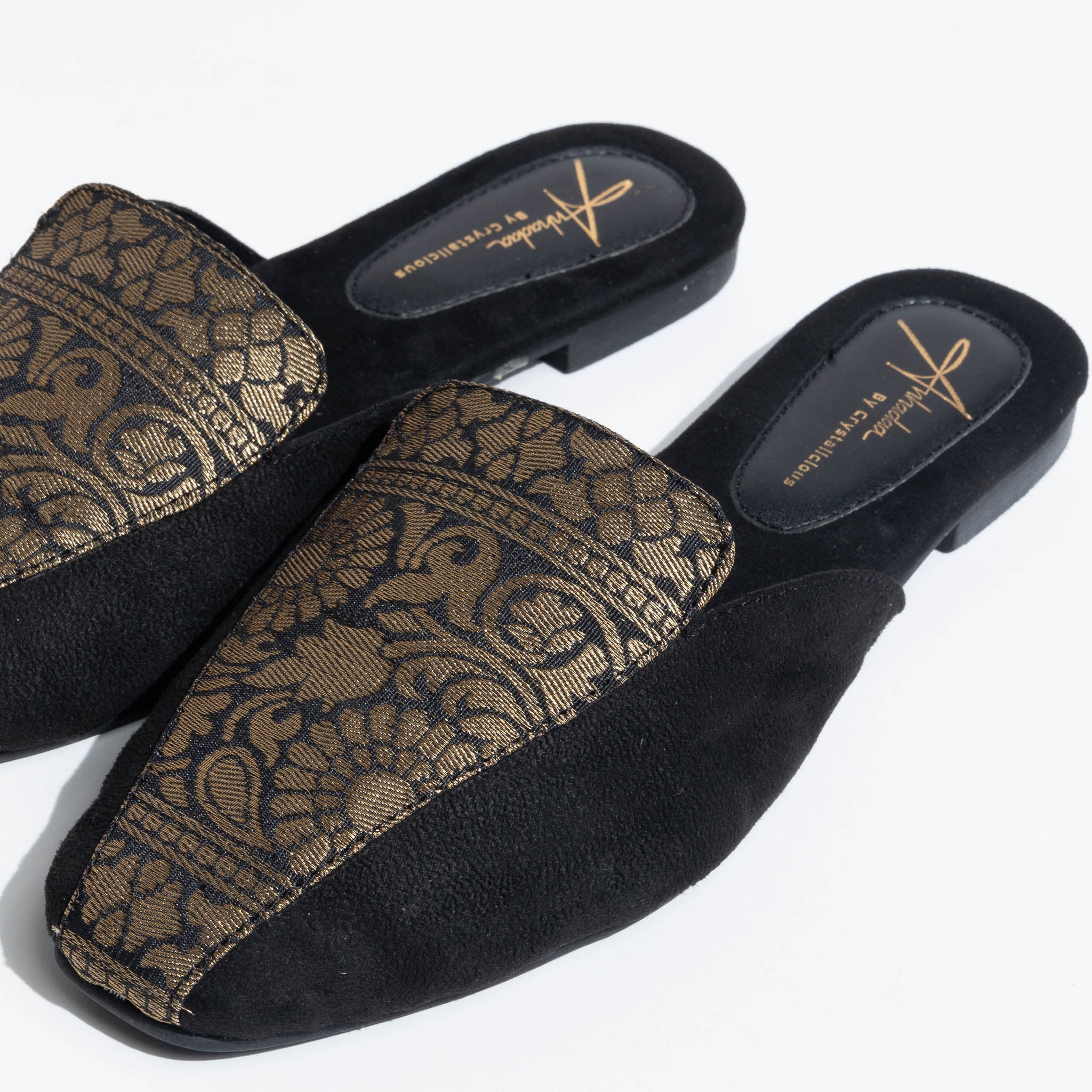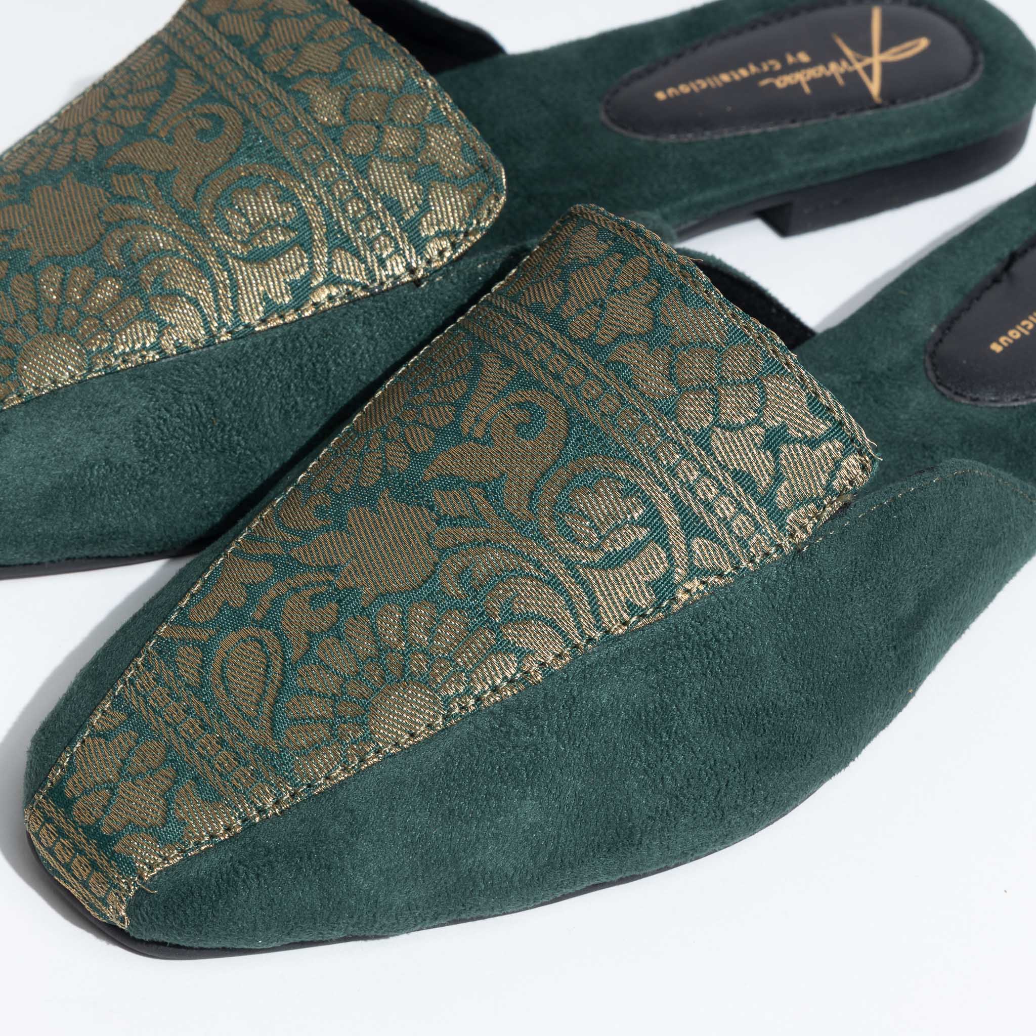 The Sirat Mule exudes timeless elegance and exceptional craftsmanship, making it a standout addition to your wardrobe. Made from luxurious brocade, a sturdy rubber sole, and detailed with suede accents, Sirat is thoughtfully designed to elevate your look while keeping you comfortable. This mule is the ideal choice for those seeking sophisticated style that seamlessly transitions across occasions, allowing Sirat to strike the perfect balance between chic and comfort.