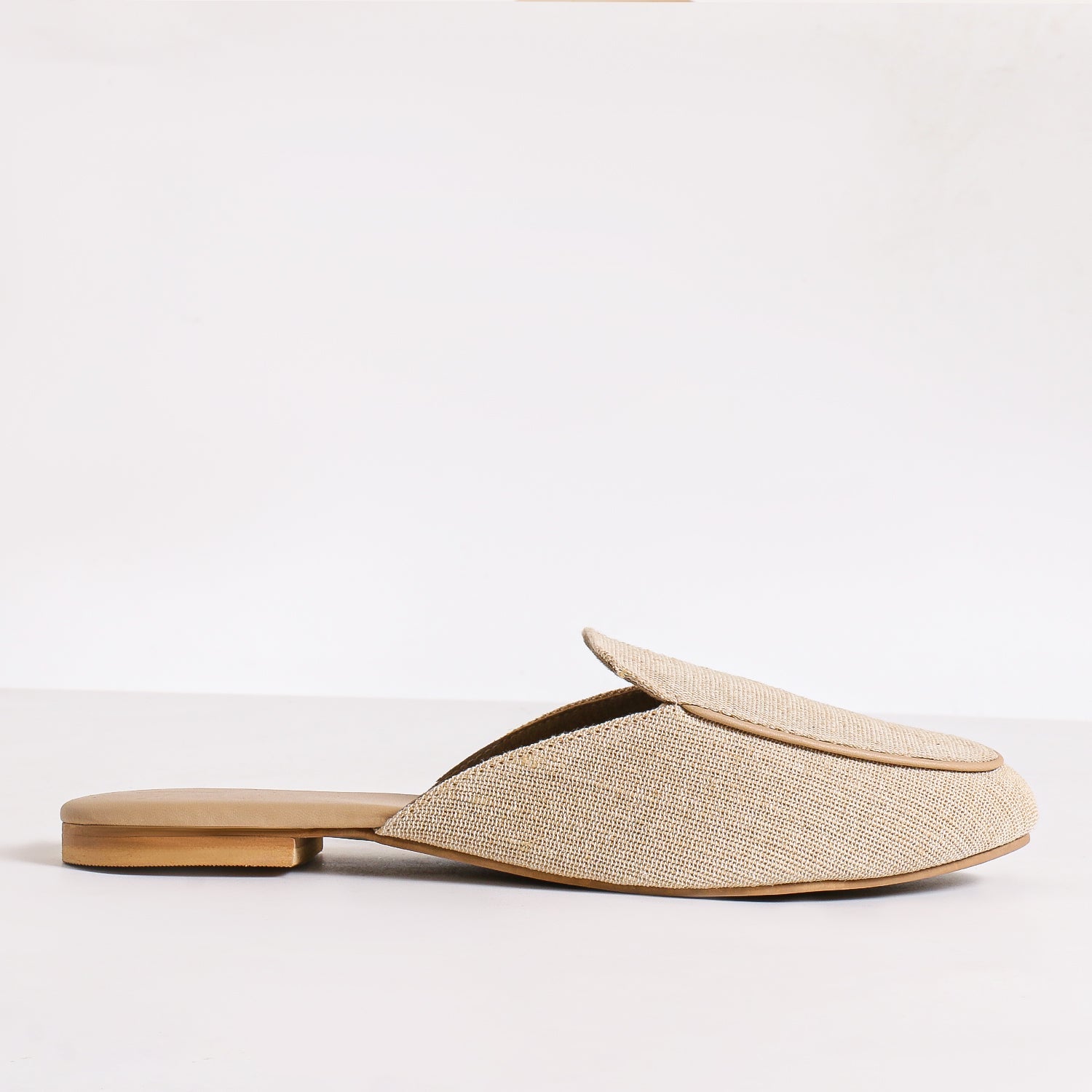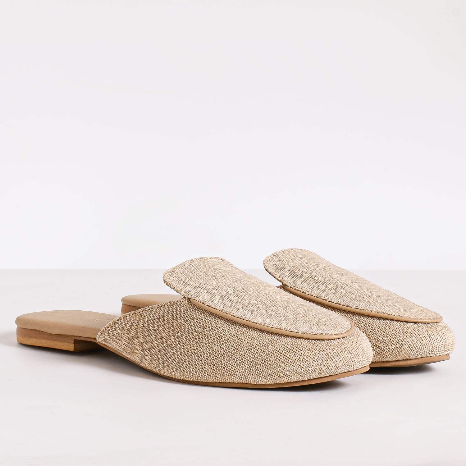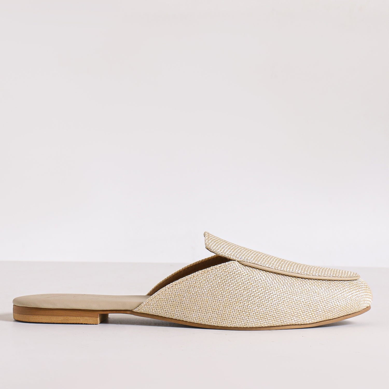The Loren Mule is the epitome of effortless sophistication, designed for those who appreciate timeless elegance with a touch of sustainable luxury. Crafted with faux leather, a durable rubber sole, and a burlap upper, this mule offers a unique blend of textures, creating a refined yet contemporary look. With its round toe shape, elegant silhouette, and chic detailing, Loren is the perfect choice for those who seek both style and comfort.
