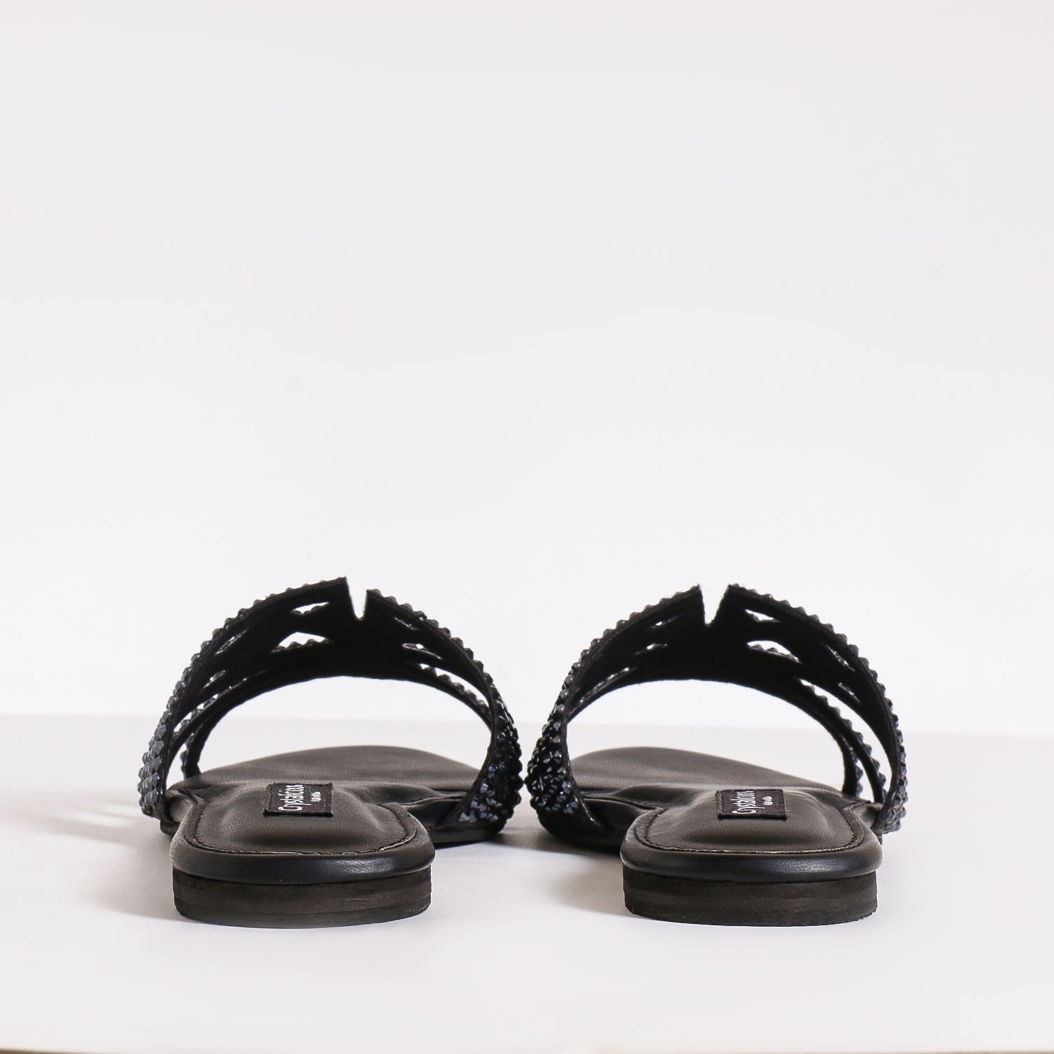 The Tessa Flat Slide Sandals are a stunning blend of timeless elegance and modern comfort, making them the perfect choice for effortless sophistication. Designed with faux leather, a durable rubber sole, and embellished with shimmering rhinestones, these flats add a touch of luxury to any look. Featuring a round toe shape and a flat, elegant style, Tessa is ideal for both casual and formal occasions.